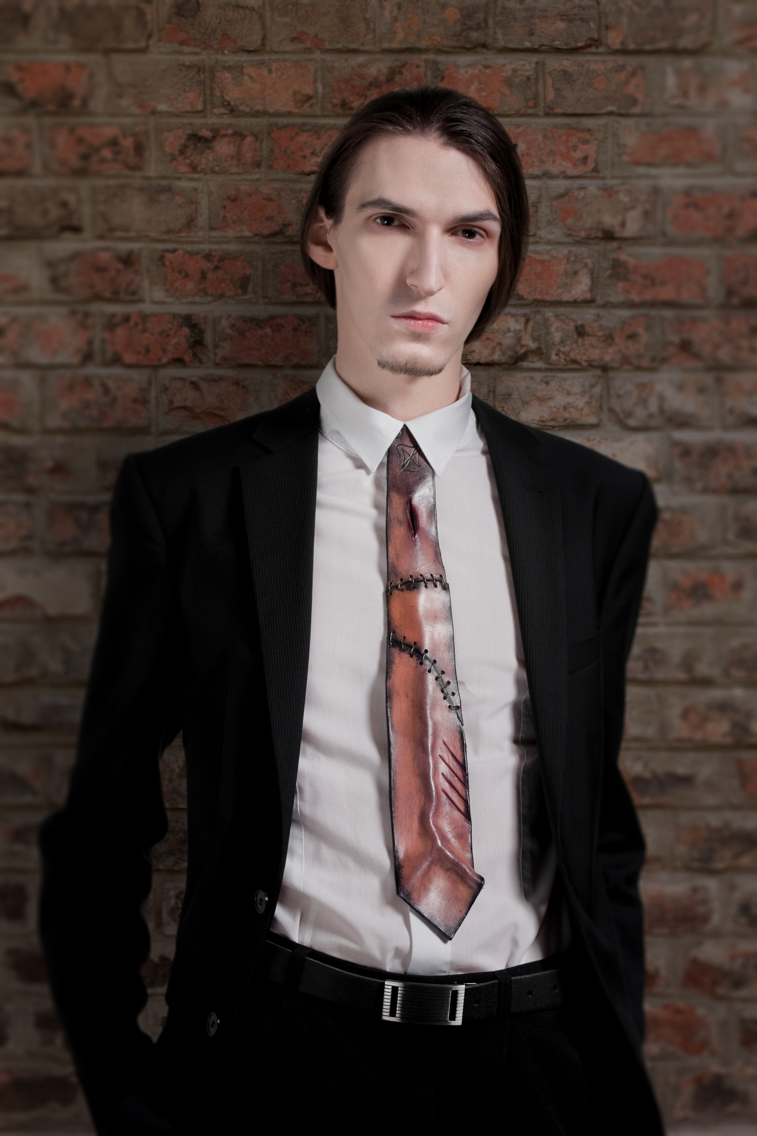 Sculpted leather tie, Hand painted, adjustable in the back, stitched with wire. Each tie is individual sculpted and painted, thus not 2 are alike.